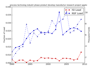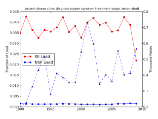 BLUE SOLID: NSF topic loading over time