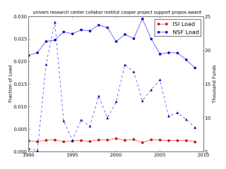 BLUE DASHED: NSF funding